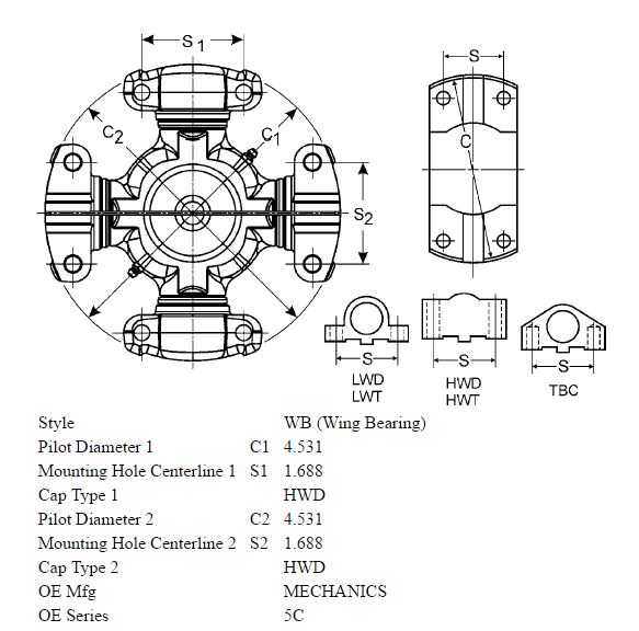 5-7000X Wing Bearing U-Joint - 7C Series LWT HYSTER, IH, JOY, WABCO MASSEY-FERGU